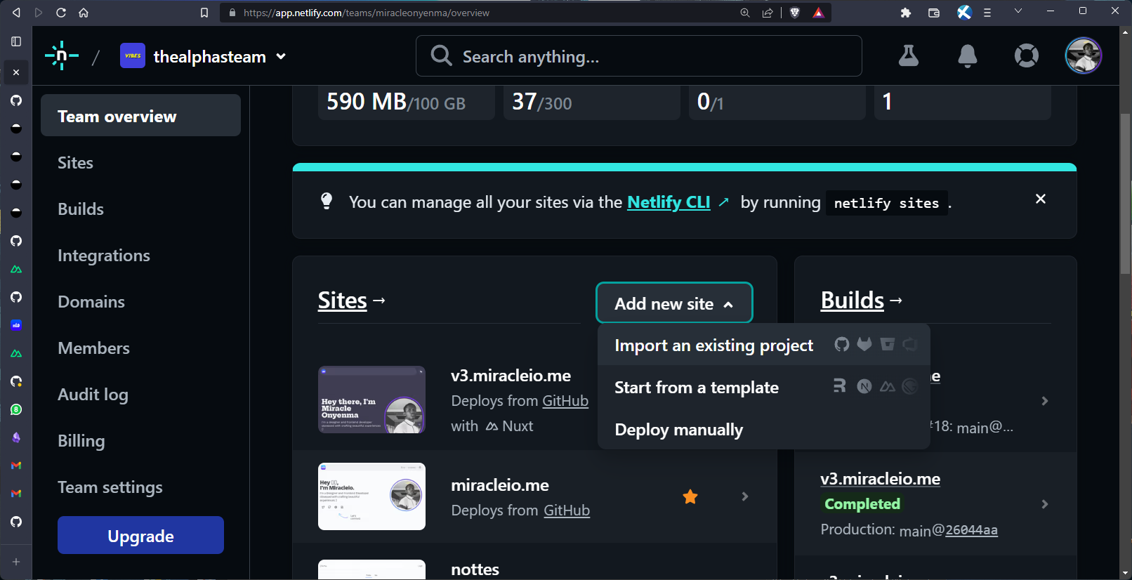 First, you'll have to Add a new site by importing an existing project from your GitHub account.